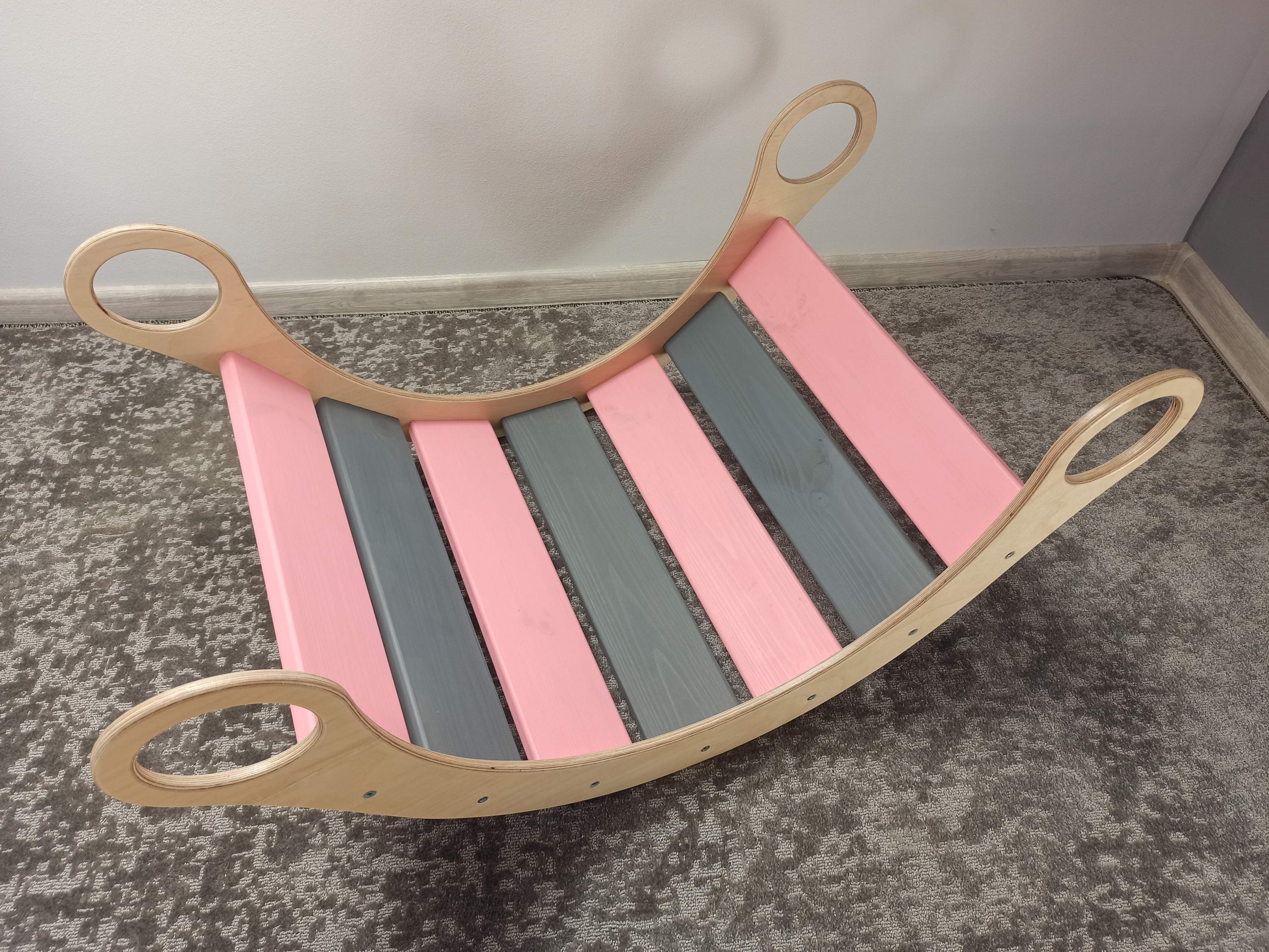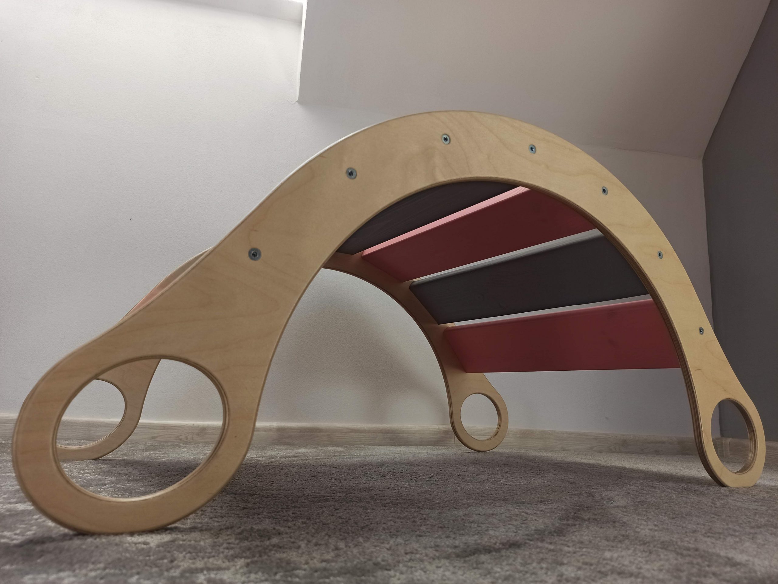 Tato dřevěná houpačka Montessori 7v1, bez madel, je báječným doplňkem každého dětského pokojíku. Výborně doplní vzhled pokojíčku díky použití výhradně přírodních materiálů – dřeva. A protože umíme čarovat s barvami, můžete doplnit dětský pokojíček houpačkou, která bude barevně ladit s barvami pokojíčku! Houpačka vypadá skvěle a zároveň velmi pěkně ozdobí dětský pokojíček. Navíc v sobě ukrývá mnoho dalších skrytých a to zejména užitečných funkcí! Dítko se hrou na houpačce bude učit balancovat, cvičit rovnováhu a rozvíjet svou motoriku. Houpačka tak dokonale spadá do programu Montessori a je zárukou 100% zábavy a využití pro Vaše děti.