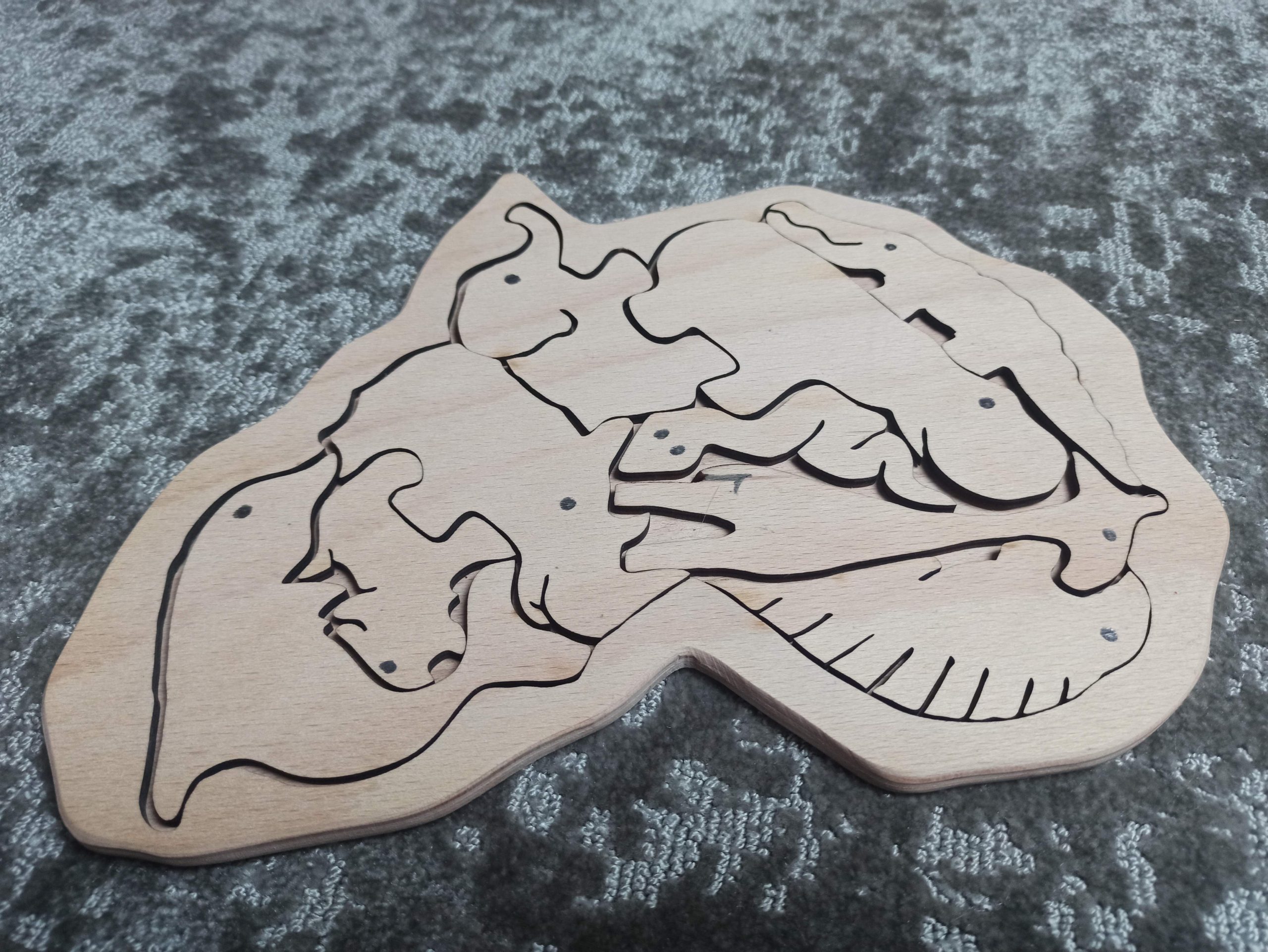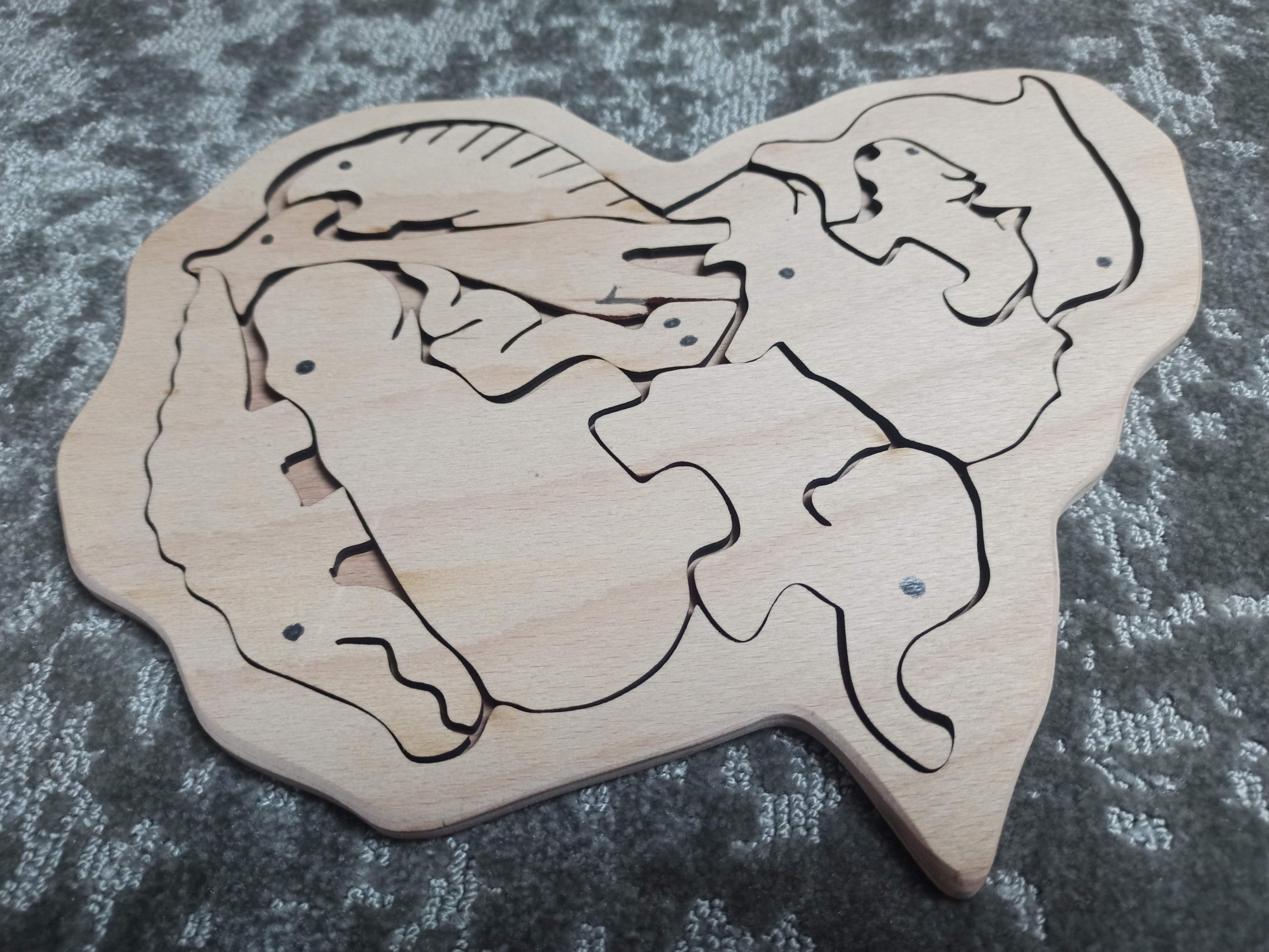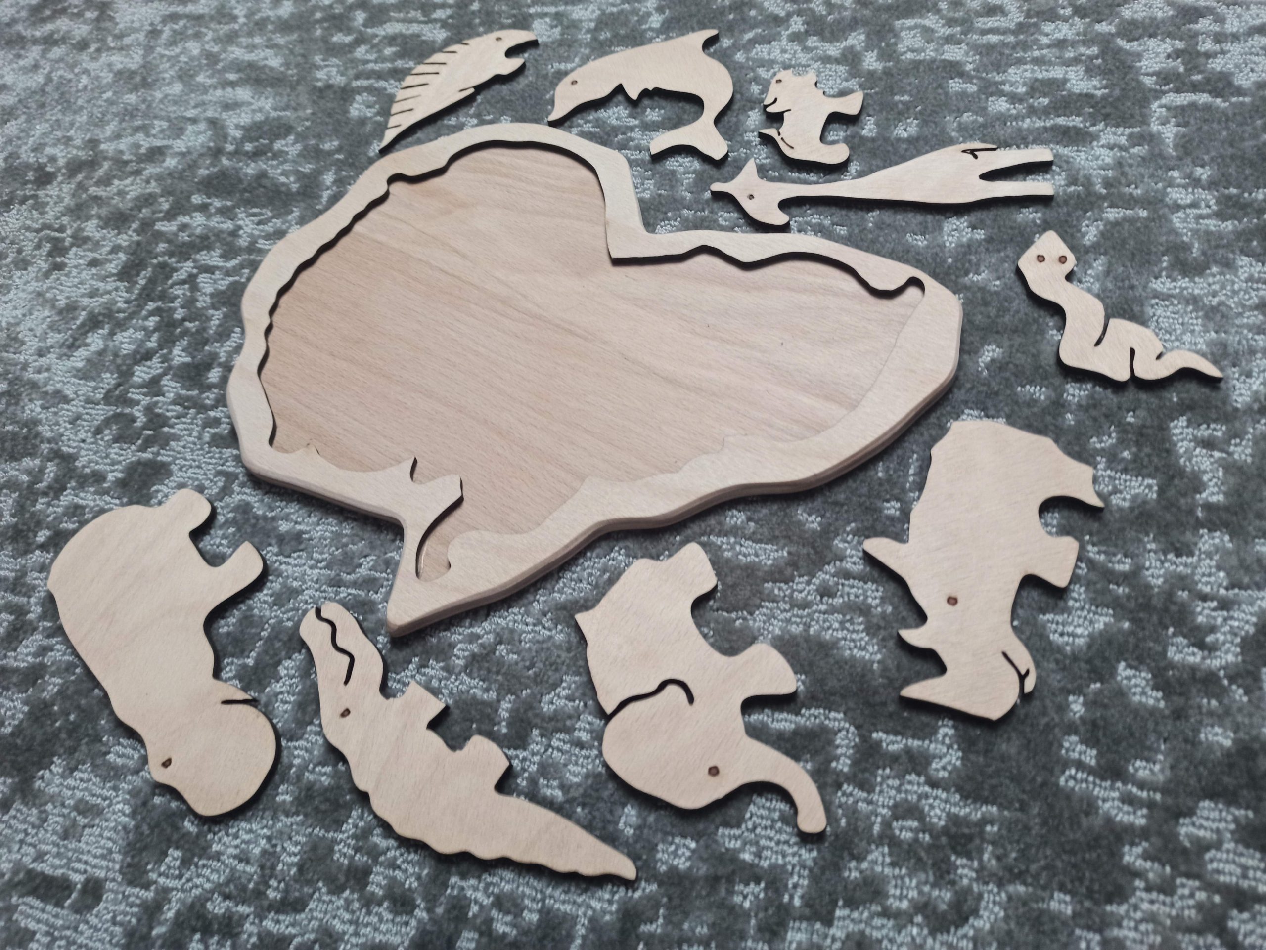 Představujeme naše dřevěné puzzle s africkými zvířaty v mapě Afriky! Úžasně velké puzzle k uspokojení nejednoho malého technika, či malou techničku. Puzzle je vyrobeno výhradně ze dřeva a není ošetřeno ani lakem, ani jinými barvami. Africké puzzle ozdobí nejeden pokojíček a zabaví nejedno šikovné a manuálně zručné dítko. Dílky jsou umístěné v podkladové desce, která má vyfrézovaný okraj tak, aby se zvířátka lehce vkládala, zároveň je puzzle navrhnuto tak, že každé zvířátko má své místo a vše do sebe musí krásně zapadnout. Puzzle zapadá do prvku Montessori, protože učí dítě motorickým schopnostem a rozvíjí jeho fantazii. Puzzle je nejlepší pro rozvoj jemné motoriky, zejména v koordinaci ruce-oči.
